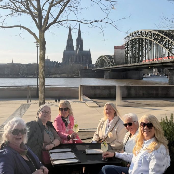 Bei der Ankunft empfängt uns die Wärme der Sonne und der Kölner Ladies. Spontan treffen wir uns am Rheinufer, um jeden Sonnenstrahl aufzusaugen.